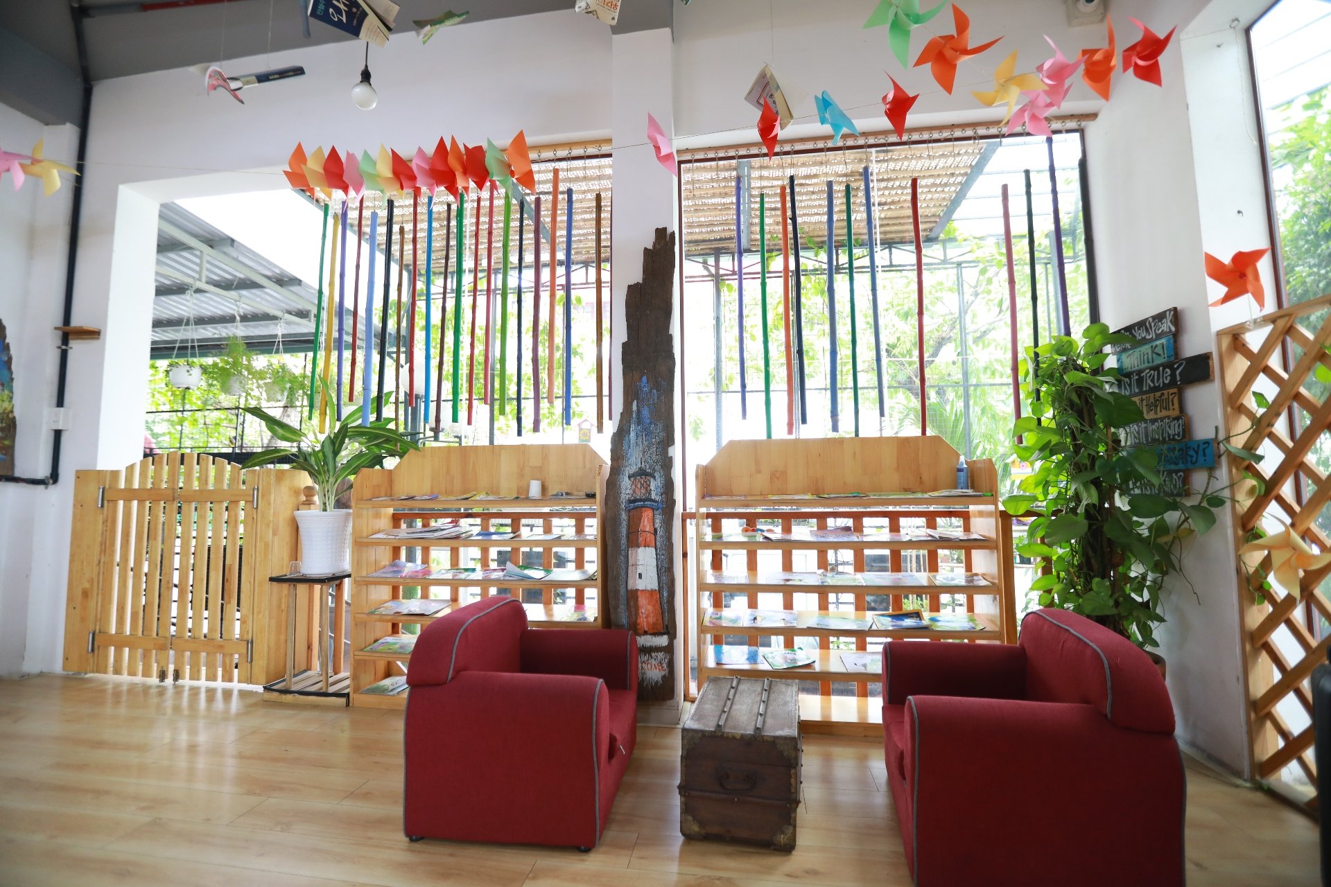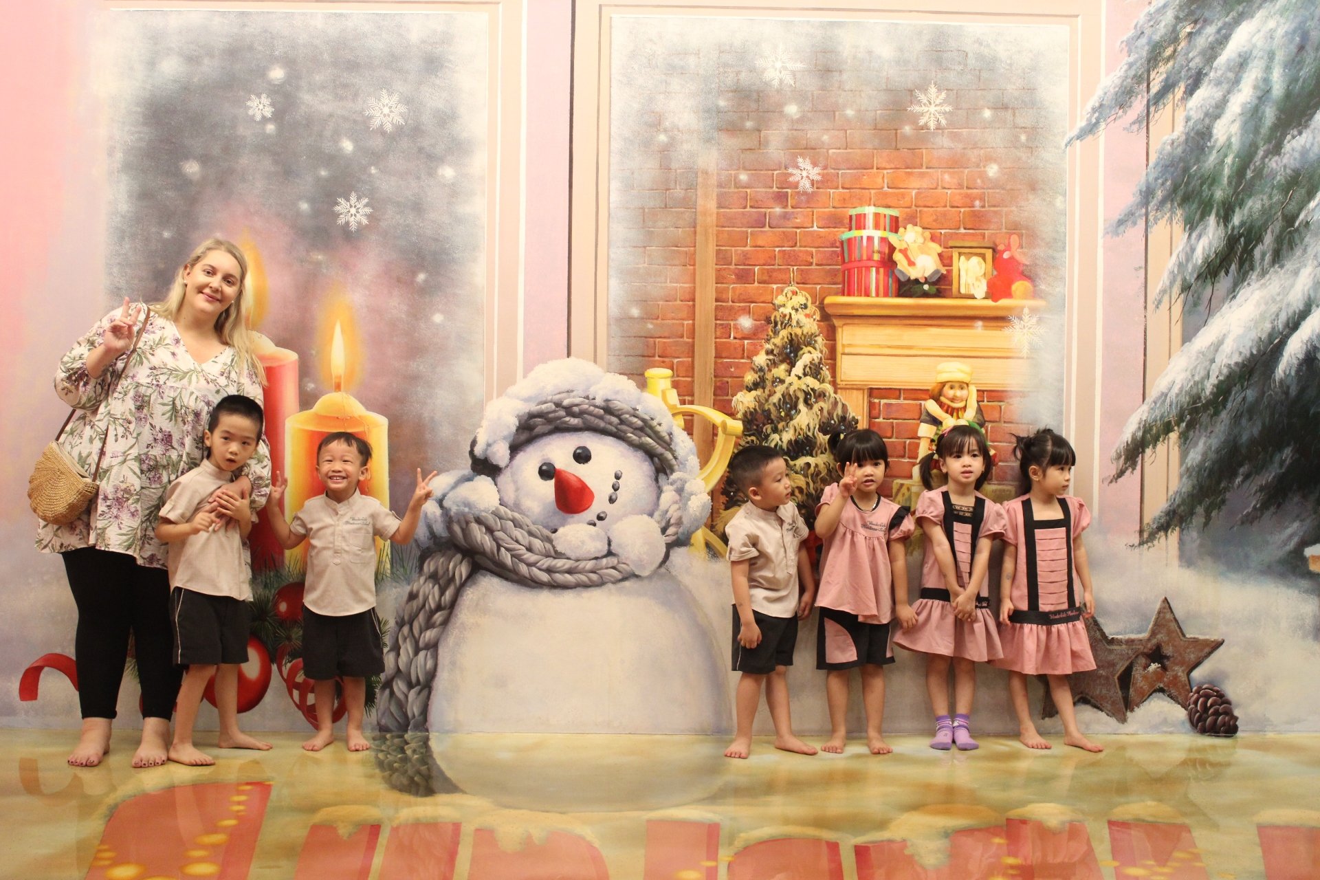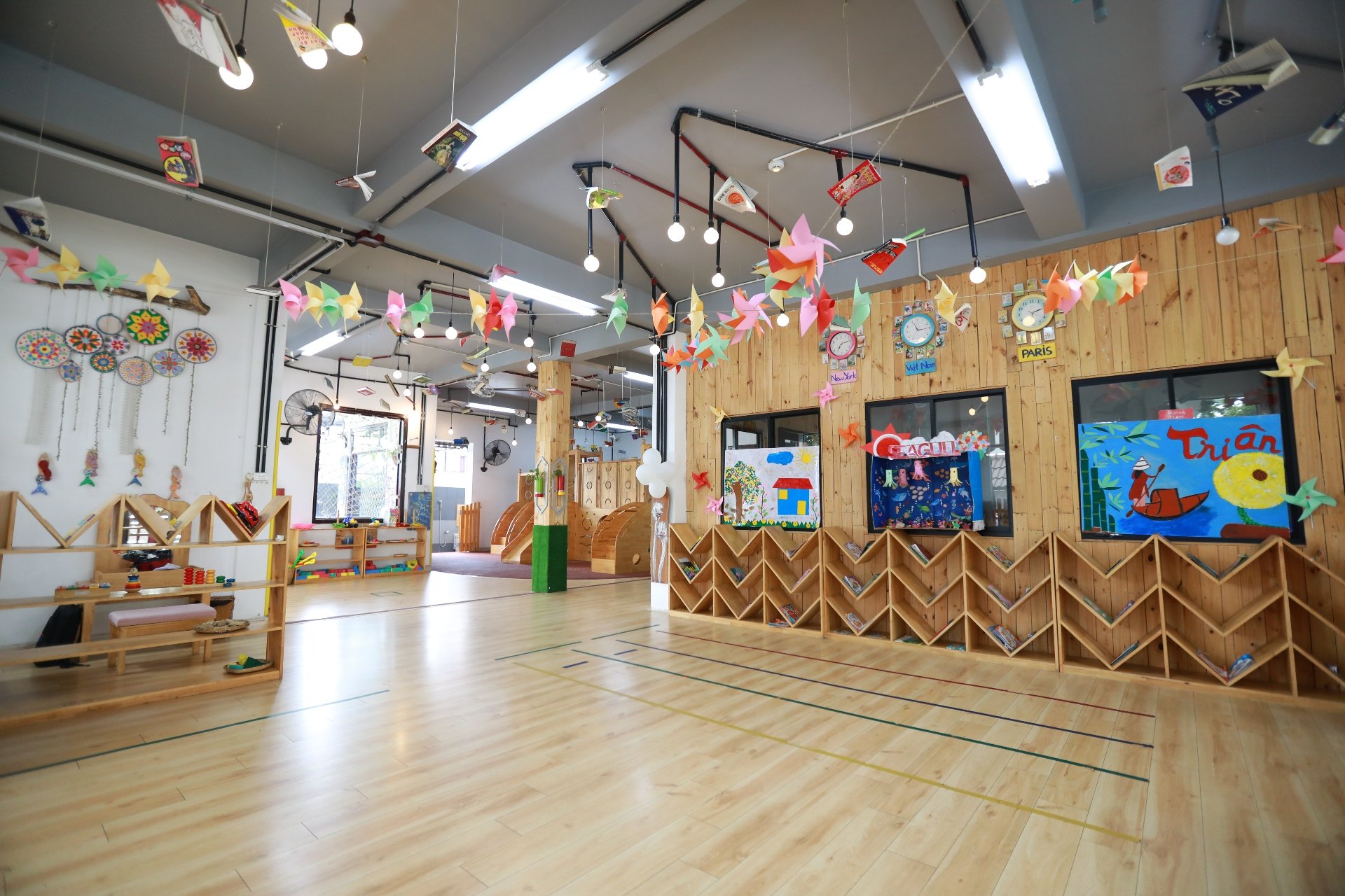 trường học tiếng Anh nhiều nên mình yên tâm về phần tiếng Anh của con, con cũng không còn rụt rè khi ra ngoài cùng mẹ, không gian trường thoáng mát